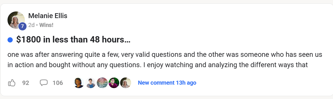 One customer puts you in profit mode! Members made their investment back & got their first customer within 7 Days!